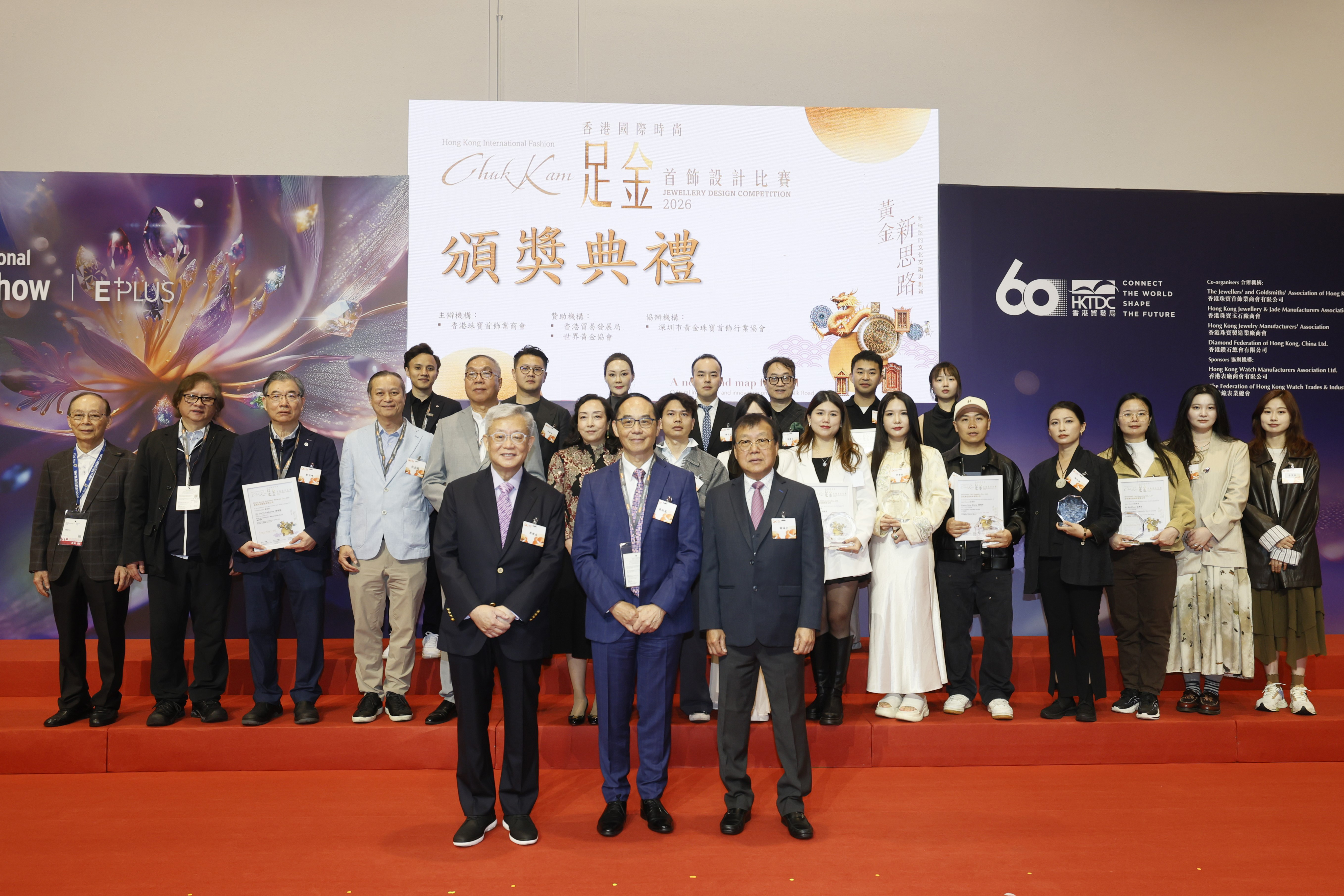 Winners of the Hong Kong International Fashion Chuk Kam Jewellery Design Competition pictured at the award ceremony with distinguished guests