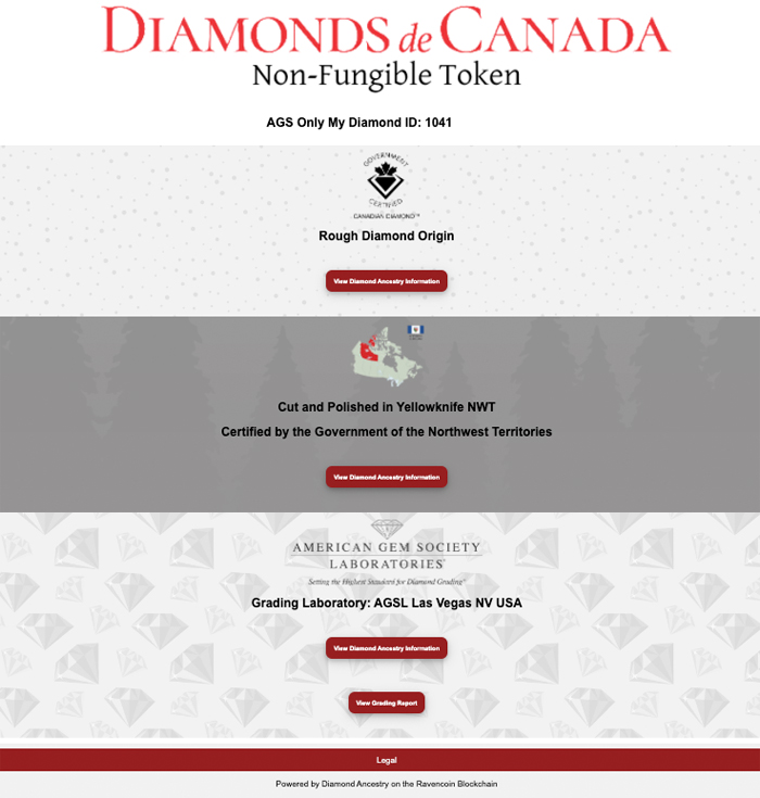Diamonds de Canada through Diamond Ancestry not only gives the immutable traceability on their diamonds, but also offers clients the ability to encapsulate that journey into a Non-Fungible Token (NFT) (see image).