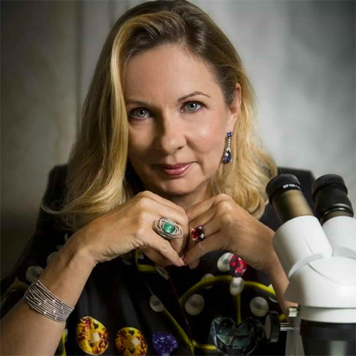 Manuela Soares, Minas Gerais, Brazil. Manuela is a leading dealer and authority on Brazilian gemstones. She is co-owner of ArtOuro & Gemas, which supplies mainly tourmalines, aquamarines, paraiba and rubellites. She is the second generation of a family of gem dealers and is a board member of the Brazilian association of gem dealers (Sindijoias – Ajomig).