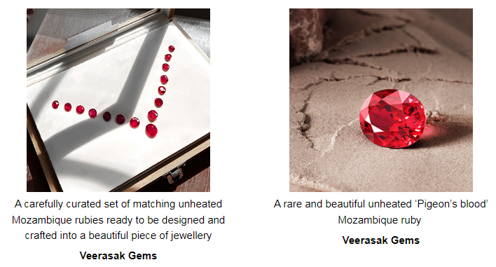 Buyers searching for fine rubies are going to be delighted with Veerasak Gems’ prized collection. With over 40 years of expertise in gemstone cutting and polishing, Veerasak is presenting some of its stunning finds from Mozambique – jewellery layouts consisting of matching unheated rubies and single stones of the most vibrant colours. The company is also displaying sapphires, spinels and peridots, from layouts to pairs and single stones.