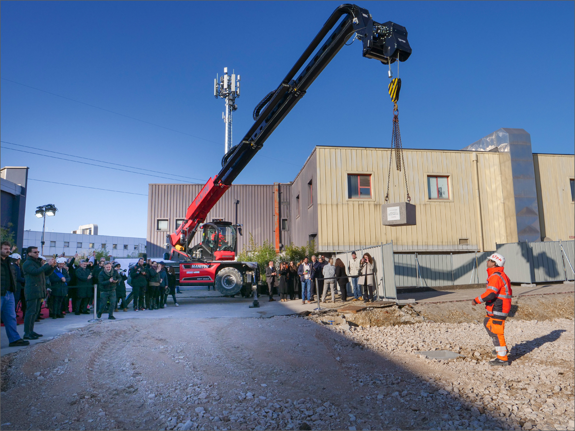 After the blessing by Don Giampaolo Marta, vicar general of the Diocese of Vicenza, Volking Marg handed the expansion project to IEG president Maurizio Ermeti in a container, who in turn placed it in the concrete block. Together with mayor Giacomo Possamai, provincial president Andrea Nardin, and Vicenza Chamber of Commerce president Giorgio Xoccato, Ermeti and Marg gave the foundation stone a symbolic tap with a trowel. Managing director Corrado Peraboni, operations director and director of IEG's Vicenza venue Mario Vescovo, chief corporate officer Carlo Costa and chief business officer Marco Carniello also attended on behalf of IEG.