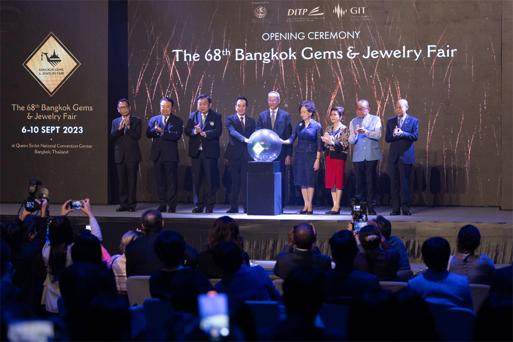 Mr. Phusit Ratanakul Sereroengrit, Director-General of the Department of International Trade Promotion (DITP), Ministry of Commerce, presided over the opening of the 68th Bangkok Gems and Jewelry Fair at the Plenary Hall, Queen Sirikit National Convention Center. This gems and jewelry trade fair, taking place between 6-10 September 2023, is jointly organized by the Department of International Trade Promotion (DITP) in collaboration with The Gem and Jewelry Institute of Thailand (GIT) and boasts support from over 15 public and private trade agencies.