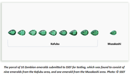Advanced testing using Laser Ablation Inductively Coupled Plasma Mass Spectrometry (LAICPMS) on an anomalous stone from a batch of 10 emeralds submitted to the Swiss Gemmological Institute SSEF has indicated that it is likely to have been sourced at Musakashi, in the Solwezi district of central Zambia. This suggests that production at that site has been increased. The other nine stones showed characteristics typical of production from the Kafubu area, where most of Zambia’s emeralds have been mined to date.