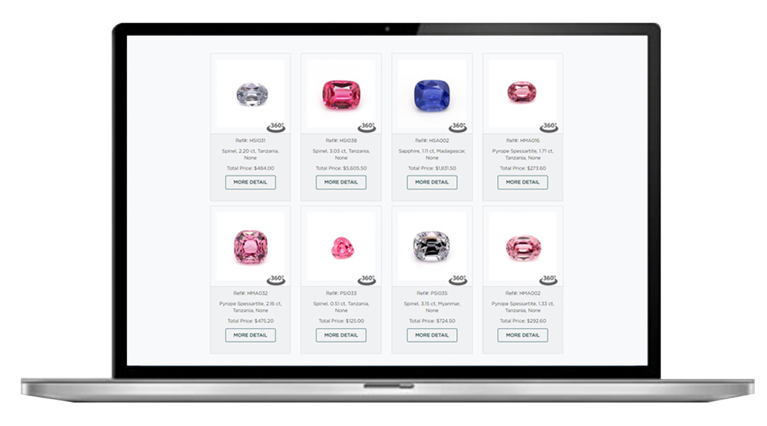 The signature product is a state-of-the-art inventory management software that allows syncing to B2B platforms and e-retailers, through a system of verification of both the vendor and the gemstones, to provide a reliable feed with consistent imagery.